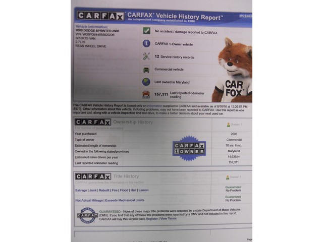 | Print this listing 2005 DODGE SPRINTER 2500 140''WB PASSENGER VAN!! REAR AC!! 1OWNER!!CLEAN CARFOX!Auto Sales Inc.225 Lincoln hwyFairless Hills, PA 19030Call Us Today(267) 551-1122Ask Us A Question Vehicle DetailsYear: 2005Make: DodgeModel: Sprinter WagonVIN: WD8PD644555820236Mileage: 157300Transmission: AutomaticEngine: 5 Cylinder, 2.7 LExterior Color: WhiteTitle: Clear Description